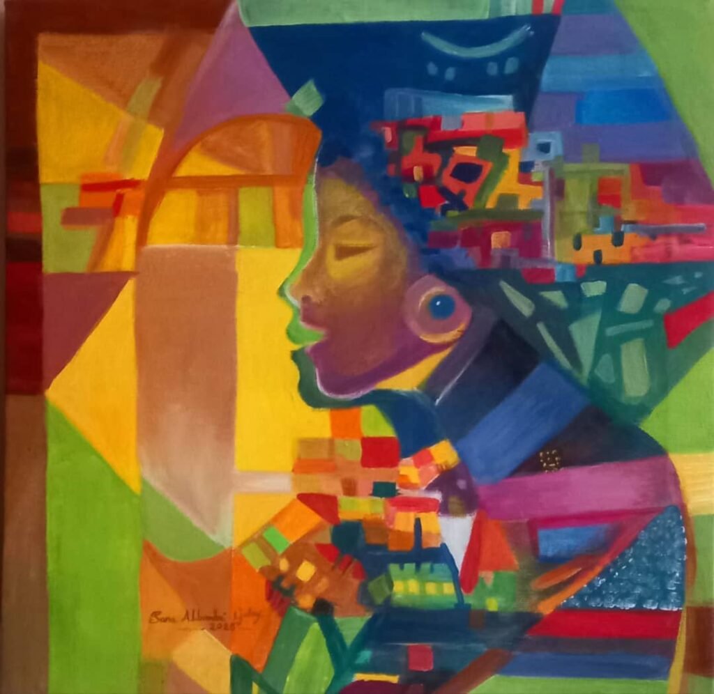 حين تنظر إلى لوحات سارة البدري، لا ترى فقط ألوانًا وأشكالًا، بل تسمع صوتًا داخليًا يهتف بالحياة، رغم كل ما يحيط بها من موت، وجوه نسائها المنحوتة بالألم، تفاصيل المدن التي إحترقت، والأحلام التي تقفز من إطار إلى آخر، كلها تقول إن سارة لا ترسم من أجل الجمال فحسب، بل من أجل الحقيقة ، في أعمالها، تحضر المرأة السودانية كرمزٍ دائمٍ للثبات والصبر، تحمل الطين والماء والحكايات، تنظر بعينين مليئتين بالحزن والقوة، لا تترك سارة تفاصيل الوجع تغرق ، بل تحوّله إلى رسائل بصرية مدهشة، تصرخ وتبكي وتقاوم في صمتها، في كل خطّ من خطوطها تجد الحنين للوطن، والإحتجاج على تمزّقه، والرغبة الملحّة في ترميم روحه، وفي زمن الحرب، حين غادر بعض الفنانون، وإختفت المعارض، وأُغلقت دور العرض، ظلت سارة البدري ترسم، على قماش مهترئ، أو ورق قديم، أو حتى على الجدران، كانت تعرف أن الوطن يحتاج إلى من يشهد، إلى من يوثق، إلى من يحبّه رغم كل شي.